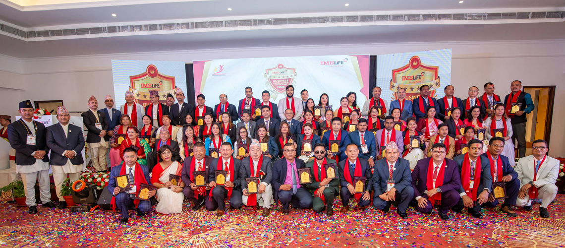 काठमाडौं । अग्रणी जीवन बीमक आईएमई लाइफ इन्स्योरेन्सको बिजनेस एक्सेलेन्स अवार्ड २०२५ सम्पन्न भएको छ । आर्थिक वर्ष २०८१–०८२ मा उत्कृष्ट व्यावसायिक प्रदर्शन गर्ने आफ्ना अभिकर्ताहरूलाई सम्मान गर्ने उद्देश्यले बिजनेस एक्सेलेन्स अवार्ड २०२५ को आयोजना गरिएको हो । उक्त कार्यक्रममा कम्पनीका सञ्चालक समिति सदस्यहरू, प्रमुख कार्यकारी अधिकृत, नायब प्रमुख कार्यकारी अधिकृतहरू, चिफ मार्केटिङ अफिसरहरू, प्रदेश प्रमुखहरू तथा अन्य कर्मचारीहरूको उल्लेखनीय उपस्थिति रहेको थियो ।
