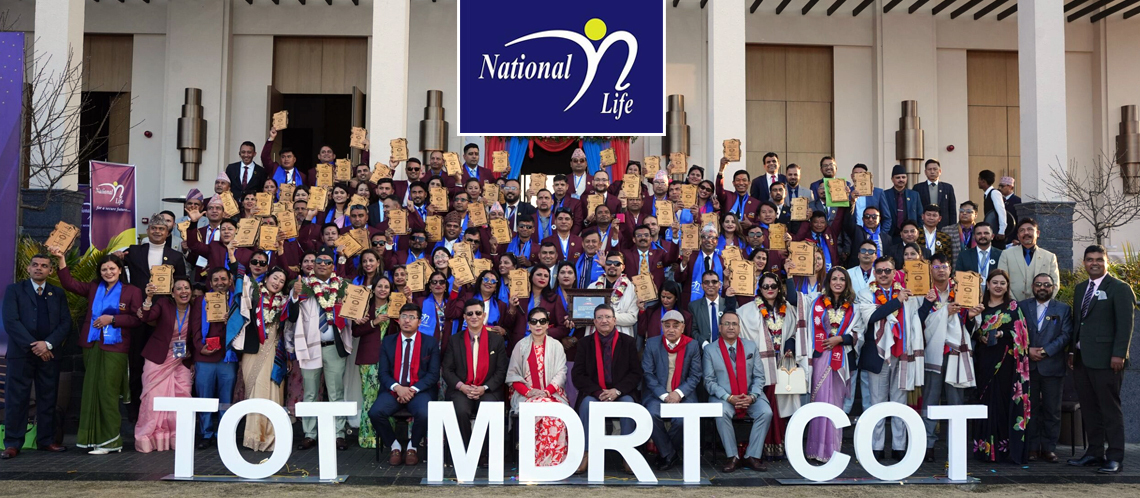 काठमाडौं । नेपालको अग्रणी जीवन बीमक नेशनल लाइफ इन्स्योरेन्स कम्पनीले धुलिखेल स्थित दुषित थानी हिमालयन रिसोर्टमा कम्पनीकी अध्यक्ष प्रेमा राज्य लक्ष्मी सिंहको प्रमुख आतिथ्य तथा प्रमुख कार्यकारी अधिकृतको सभापतित्वमा एमडीआरटी सम्मान तथा तालिम कार्यक्रम सम्पन्न गरेको छ । अभिकर्ताहरुको अन्तराष्ट्रिय फोरम एमडिआरटीले एमडिआरटी २०२६ का लागि तोकेको बीमाशुल्क संकलन गरी नेपालभरबाट टिओटीमा २ जना सिओटीमा ४ जना र एमडिआरटीमा ७७ जना गरी छनौट भएका ८३ जना अभिकर्ताहरुलाई भव्य समारोहका बिच सम्मान गरेको छ । कम्पनीकी अध्यक्ष प्रेमा राज्य लक्ष्मी सिंहले पानसमा द्विप प्रज्वलन गर्दै शुभारम्भ गरिएको सो कार्यक्रममा सहभागि भएका अभिकर्ताहरुलाई चर्चित अन्तर्राष्ट्रिय प्रशिक्षक काजिम रजाले जीवन बीमा व्यवसायमा थप हौसला प्रदान गर्दै अभिकर्ताहरुको व्यवसायिक दक्षता अभिवृद्धि गरी निरन्तर एमडिआरटीको लक्ष्य पुरा गराउने उदेश्यले विभिन्न उदाहरण प्रस्तुत गर्दै तालिम प्रदान गरेका थिए । समारोहमा प्रमुख कार्यकारी अधिकृतले कम्पनीलाई अग्रस्थानमा पु¥याउन महत्वपूर्ण भुमिका खेल्ने अभिकर्ता समूहलाई उच्च प्राथमिकतामा राख्दै केही नयाँ अभ्यासहरु शुरु गरेको र यसबाट अभिकर्ताहरु उत्साही भएको बताए । उनले एमडिआरटी २०२६ मा तोकिएको बीमाशुल्क संकलन गरी एमडिआरटी सिओटी र टिओटीको गरिमामय लक्ष्य हासिल गर्न सफल सबै अभिकर्ताहरुलाई विशेष सम्मान गरे । साथै कम्पनीले एमडिआरटी अभिकर्ता उत्पादनलाई थप बल पुग्ने गरी ल्याएको मासिक योजना चेज योर एमडिआरटीमा सफल हुने अभिकर्तालाई तोकिएको प्रोत्साहन प्रदान गरिएको थियो । यसैगरी सबै भन्दा बढि एमडिआरटी अभिकर्ता उत्पादन गर्न सफल तिनकुने शाखालाई पनि सम्मान गरेको छ । कम्पनीको उप प्रमुख कार्यकारी अधिकृत स्मृती राज कँडेलले सहभागिहरुलाई स्वागत गरेको सो कार्यक्रममा कम्पनीका नायब महाप्रवन्धक प्रज्वल सायमीले धन्यवाद ज्ञापन गरे । विभिन्न मनोरन्जानात्मक प्रस्तुती, उपलब्धिमूलक उत्प्रेरक तालिम र उच्चस्तरको सम्मान कार्यक्रम समावेश गरिएको भव्य समारोहमा सम्मानित भई प्रमुख कार्यकारी अधिकृतबाट सम्मान ग्रहण गर्न पाउँदा आफुहरुले गरेको मेहनतको कदर भएको र अत्यन्तै गर्व लागेको सम्मानित बिजनेश लिडरहरुले बताएका थिए ।