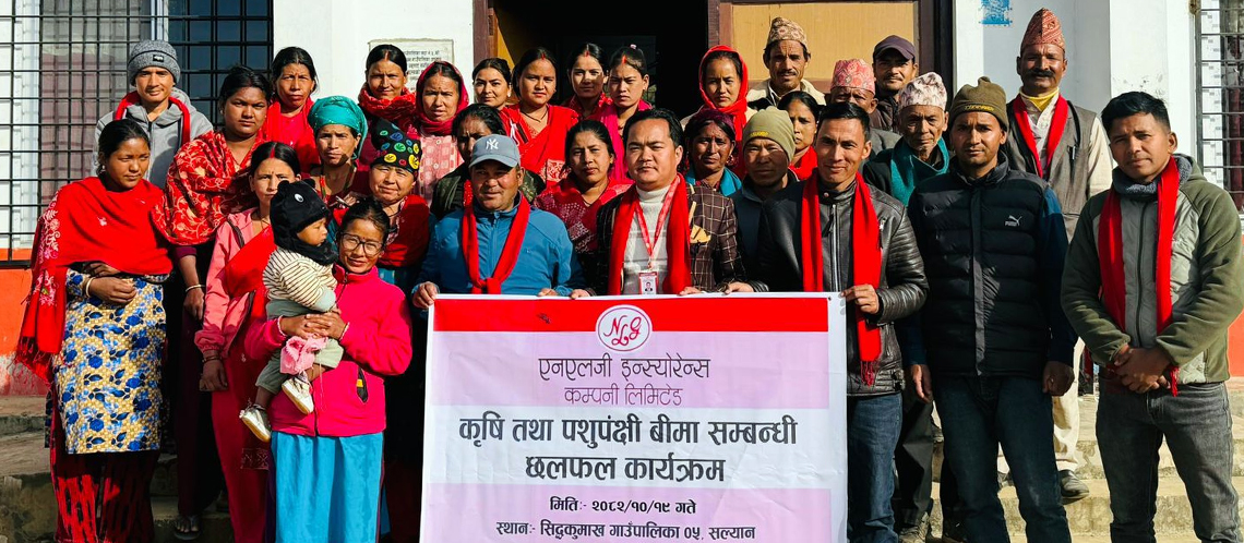 एनएलजी इन्स्योरेन्स कम्पनी लिमिटेडका बिजनेस कोअर्डिनेटर सुनील श्रेष्ठले कृषकलाई प्राकृतिक जोखिम तथा आर्थिक क्षतिबाट सुरक्षित गर्न कम्पनीले देशभर का गाउँ–गाउँमा पुगेर बीमा सचेतना कार्यक्रम सञ्चालन गर्दै आएको जानकारी दिए । कार्यक्रमका प्रमुख अतिथि सिद्धकुमाख गाउँपालिका वडा नं ५ का वडा अध्यक्ष चुडामणि रेउलेले बीमाले कृषकको आर्थिक सुरक्षामा महत्वपूर्ण योगदान पुर्‍याउने बताउँदै प्राप्त जानकारीलाई टोल–टोलसम्म पुर्‍याउन आग्रह गरे । उनले आगामी दिनमा वडास्तरबाट बीमालाई उच्च प्राथमिकतामा राखी कृषकलाई बीमाको दायरामा ल्याउन सक्रिय भूमिका खेल्ने प्रतिबद्धता व्यक्त गरे । एनएलजी इन्स्योरेन्स सल्यान शाखा प्रमुख अनुराग बोहराले कार्यक्रममा सहभागी सबैप्रति धन्यवाद व्यक्त गर्दै छलफलका क्रममा उठेका जिज्ञासाहरूको स्पष्ट जवाफ दिए । उनले विगत केही वर्षदेखि सञ्चालन गरिएको गाउँस्तरीय बीमा अभियान सकारात्मक र प्रभावकारी बन्दै गएको बताए । कार्यक्रमकै क्रममा कृषि तथा पशुपन्छी बीमा दाबी अन्तर्गत १२ जना कृषकलाई दाबी भुक्तानी वितरण गरिएको थियो। साथै, दाबी प्रक्रियालाई थप पारदर्शी र सहज बनाउन माघ १ गतेदेखि दाबी भुक्तानी अनलाइन माध्यमबाट मात्र उपलब्ध गराइने जानकारी पनि दिइएको थियो। नेपाल सरकारले उपलब्ध गराउँदै आएको ८० प्रतिशत बीमा शुल्क अनुदानको सुविधाबारे पनि कृषकलाई जानकारी गराइएको थियो। कार्यक्रममा वडा नं ५ का विभिन्न टोलबाट ४० जना कृषकको सहभागिता रहेको थियो। कार्यक्रम सञ्चालन एनएलजी इन्स्योरेन्सका अभिकर्ता हरि बहादुर रेउलेले गरेका थिए । कार्यक्रममा वडा सदस्य झुपलाल बोहरा, पशु प्राविधिक टिका बस्नेत र कृषि प्राविधिक तिला रेउलेलगायतको आतिथ्यता रहेको थियो।