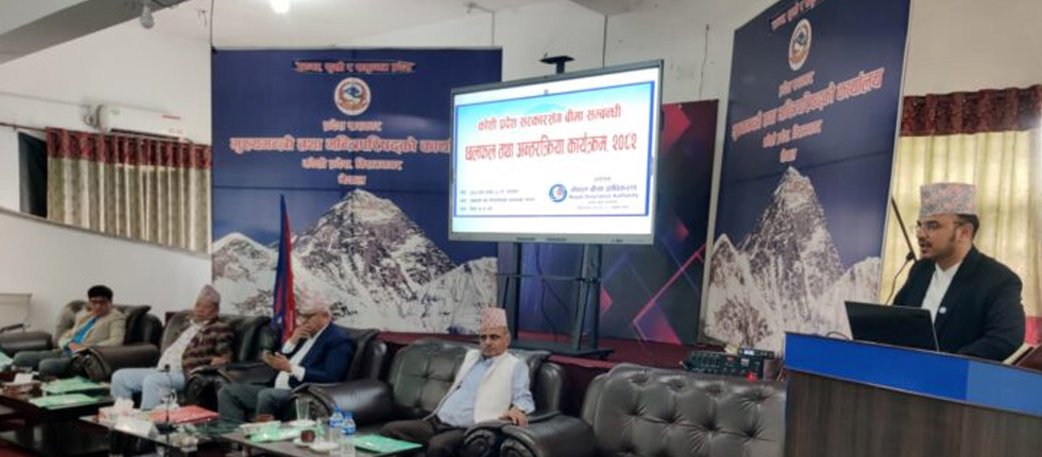 काठमाडौं । नियामक निकाय नेपाल बीमा प्राधिकरणले नयाँ नेतृत्व पाएसँगै आफ्ना गतिविधिलाई दु्रत गतिमा अघि बढाएको छ । प्राधिकरणको आयोजनामा कोशी प्रदेशस्थित मुख्यमन्त्री तथा मन्त्रिपरिषद्को कार्यालयको सभा हल, विराटनगरमा कोशी प्रदेश सरकारसँग बीमा सम्बन्धी छलफल एवम् अन्तर्क्रिया कार्यक्रम सम्पन्न भएको छ । कार्यक्रममा प्रमुख अतिथि कोशी प्रदेशका मुख्यमन्त्री हिकमतकुमार कार्कीले प्रदेश सरकारले बीमाको दायरा विस्तारका लागि अध्ययन गर्न एक उच्चस्तरीय समिति बनाउने र प्रदेश बीमा नीति ल्याउने जानकारी दिए । मुख्यमन्त्री कार्कीले आगामी आर्थिक वर्षमा राहत वितरणलाई भन्दा नागरिकलाई बीमाको दायरामा ल्याउन, न्यून आय भएकाको बीमा गर्न र घर बीमालाई अगाडि बढाउन प्राथमिकता दिने प्रतिबद्धता व्यक्त गरे । बीमा कम्पनीहरूले समयमा नै बीमा दाबी भुक्तानी नगरेसम्म बीमाप्रतिको विश्वास नबढ्ने उल्लेख गर्दै मुख्यमन्त्री कार्कीले समयमैं दाबी भुक्तानी नदिने कम्पनीहरूलाई प्राधिकरणले कारवाही गर्नुपर्ने बताए । नेपाल बीमा प्राधिकरणका अध्यक्ष शरद ओझाले बीमा ऐन र नियमावलीमा भएको व्यवस्था बमोजिम बीमालाई अगाडि बढाउन प्रदेश सरकारले देखाएको अग्रसरताप्रति आभार प्रकट गरे । अध्यक्ष ओझाले बीमा दाबी भुक्तानी समयमा नै गर्न बीमा कम्पनीहरूलाई निर्देशन दिइसकेको जानकारी दिँदै मध्यवर्ती क्षेत्रमा जङ्गली हात्तीबाट हुने जोखिमलाई ध्यानमा राखेर हात्ती बीमालेख ल्याउन आवश्यक कार्य भइरहेको जानकारी दिए । ‘बण्डल प्रोडक्ट’ विकास गरेर सबै प्रदेशमा बीमाको अभियान संचालन गर्न प्राधिकरण अग्रसर हुने जानकारी दिँदै अध्यक्ष ओझाले अनौपचारिक क्षेत्रका कामदार र विपन्न बर्गलाई बीमाको दायरामा ल्याउनका लागि आवश्यक व्यवस्था गर्न प्रदेश सरकारसँग आग्रह गरे । कार्यक्रममा नेपाल बीमा प्राधिकरणका निर्देशक निर्मल अधिकारीले बीमाको महत्व, बीमा बजारको विद्यमान अवस्था र बीमा क्षेत्रको विकास एवम् विस्तारमा प्रदेश सरकारको भूमिका सम्बन्धी प्रस्तुति गरेका थिए । कार्यक्रममा सहभागीहरूले नेपाल बीमा प्राधिकरणले सबै प्रदेशका लागि साझा प्रदेश बीमा नीतिको मस्यौदा तयार गर्नुपर्ने, बीमाको विकास एवम् पहुँच विस्तारका लागि सङ्घ र प्रदेशबीच सहकार्य हुनुपर्ने, जङ्गली हात्तीबाट प्रभावित क्षेत्रका लागि हात्ती बीमालेख ल्याउनुपर्ने, बीमा दाबी भुक्तानीमा ढिलाइ हुन नहुने लगायतका धारणा राखेका थिए । कार्यक्रममा कोशी प्रदेशका मन्त्री, प्रदेश योजना आयोगका उपाध्यक्ष, प्रदेश मन्त्रालयका सचिव तथा पदाधिकारीहरू र नेपाल बीमा प्राधिकरणका केन्द्रीय कार्यालय तथा प्रदेश कार्यालयका कर्मचारीहरू लगायतको सहभागिता रहेक