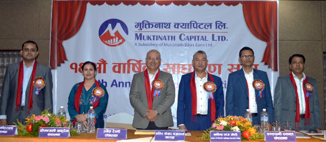 काठमाडौं । मुक्तिनाथ क्यापिटलको ९ प्रतिशत नगद लाभांश पारित भएको छ । शुक्रबार बसेको कम्पनीको १६ औं वार्षिक साधारणसभाले सञ्चालक समितिको उक्त प्रस्ताव पारित गरेको हो । उक्त सभाले लेखापरीक्षकको प्रतिवेदनसहित आर्थिक वर्ष २०८१–८२ को कारोबारमा आधारित वासलात, नाफा नोक्सान हिसाब तथा नगद प्रवाह विवरण छलफल गरी पारित गरिएको छ । उक्त साधारण सभाले आव २०८२–८३ को लेखापरिक्षण गर्नका लागि एनविएसएम एण्ड एसोसियट्स, चाटर्ड एकाउण्टेन्ट्सलाई लेखापरीक्षकमा नियुक्ति गरेको छ । अरण्य बुटिक होटलमा बसेको साधारणसभा सञ्चालक समितिका अध्यक्ष समिर शेखर बज्राचार्यको अध्यक्षता रहेको थियो ।