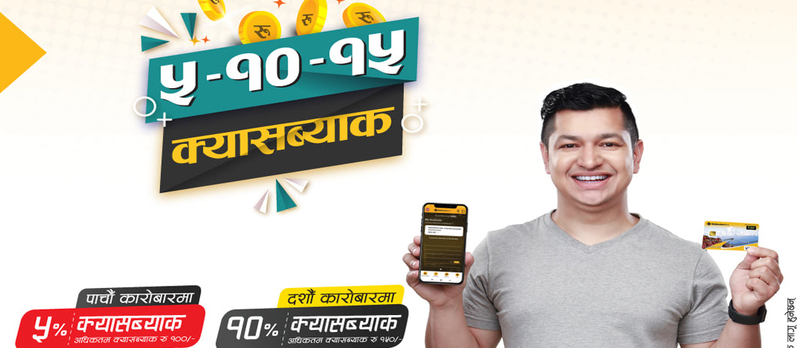 बैंकका अनुसार यो योजनाअन्तर्गत पाचौँ कारोबार रकमको ५ प्रतिशत (अधिकतम १००), १० औं कारोबार रकमको १० प्रतिशत (अधिकतम १५०) र १५ औं कारोबार रकमको १५ प्रतिशत (अधिकतम २५० रुपैयाँ) ग्राहकहरूले प्राप्त गर्न सक्नेछन् । यस योजनाले ग्राहकहरूलाई नगद भुक्तानी कारोबारबाट डिजिटल भुक्तानी कारोबारतर्फ आकर्षित गर्ने विश्वास बैंकले लिएको छ ।