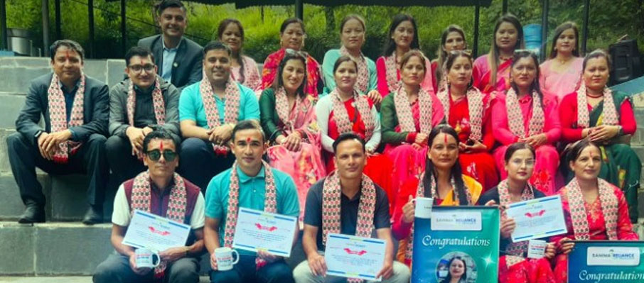 काठमाडौं । सानिमा रिलायन्स लाइफ इन्स्योरेन्स बागलुङ शाखाको आयोजनामा तीज विशेष कार्यक्रम सम्पन्न भएको छ । कार्यक्रममा शाखाका चिफ एजेन्सी म्यानेजर, सिनियर एजेन्सी म्यानेजर तथा एजेन्सी म्यानेजरलाई विभिन्न विधामा सम्मान गरिनुका साथै रमाइलो तीज उत्सव पनि मनाइएको थियो ।आर्थिक वर्ष २०८१–०८२ मा उत्कृष्ट उपलब्धि हासिल गर्ने अभिकर्ताहरूलाई प्रशंसा पत्र र मायाको चिनो प्रदान गरिएको थियो । श्रावण महिनामा घोषणा गरिएको स्किमका विजेताहरूलाई समेत सम्मान गरिएको शाखाले जनाएको छ । समारोहलाई सम्बोधन गर्दै प्रदेश प्रमुख विनोद प्रसाद त्रिपाठीले बीमा क्षेत्रमा उज्ज्वल करियर बनाउन सकिने उल्लेख गर्दै बीमाले जीवनमा आर्थिक सुरक्षा र भविष्यप्रति आत्मविश्वास जगाउने बताए । त्यस्तै बागलुङ शाखा प्रमुख प्रेम प्रसाद ढकालले बागलुङ शाखाको सफलतामा योगदान पुर्याउने सम्पूर्ण अभिकर्ताहरूलाई धन्यवाद दिँदै आगामी वर्षहरूमा अझ उत्कृष्ट परिणाम हासिल गर्ने विश्वास व्यक्त गरे । करिब ४० जनाको सहभागितामा सम्पन्न कार्यक्रममा सांगीतिक प्रस्तुति, दर खाने र तीज विशेष रमाइलो कार्यक्रमले माहोल उत्साहपूर्ण बनेको थियो ।