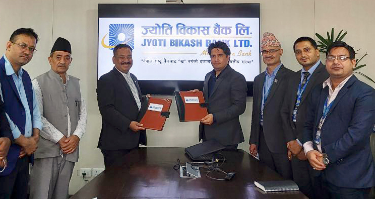 आइतबार एक कार्यक्रमकाबीच ज्योति विकास बैंकका तर्फबाट बैंकका नायव प्रमुख कार्यकारी अधिकृत पारस राज कंडेल र नेपाल सुनचाँदी रत्न तथा आभूषण महासंघका तर्फबाट महासंघका अध्यक्ष रमेश महर्जनले सम्झौतापत्रमा हस्ताक्षर गर्नुभएको थियो।