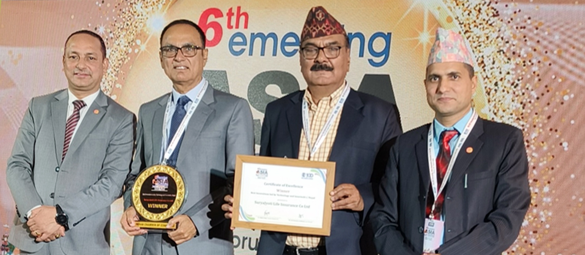 सूर्यज्योतिले पायो ‘छैठौं इमर्जिङ एशिया इन्स्योरेन्स’ अवार्ड