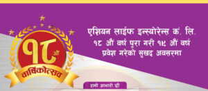 काठमाडौं । एशियन लाइफ इन्स्योरेन्स कम्पनी आफ्नो स्थापनाको १९औँ वर्षमा प्रवेश गरेको छ। १८ वर्षको सफल यात्रापछि कम्पनीले यस अवसरमा बीमित, अभिकर्ता, कर्म...